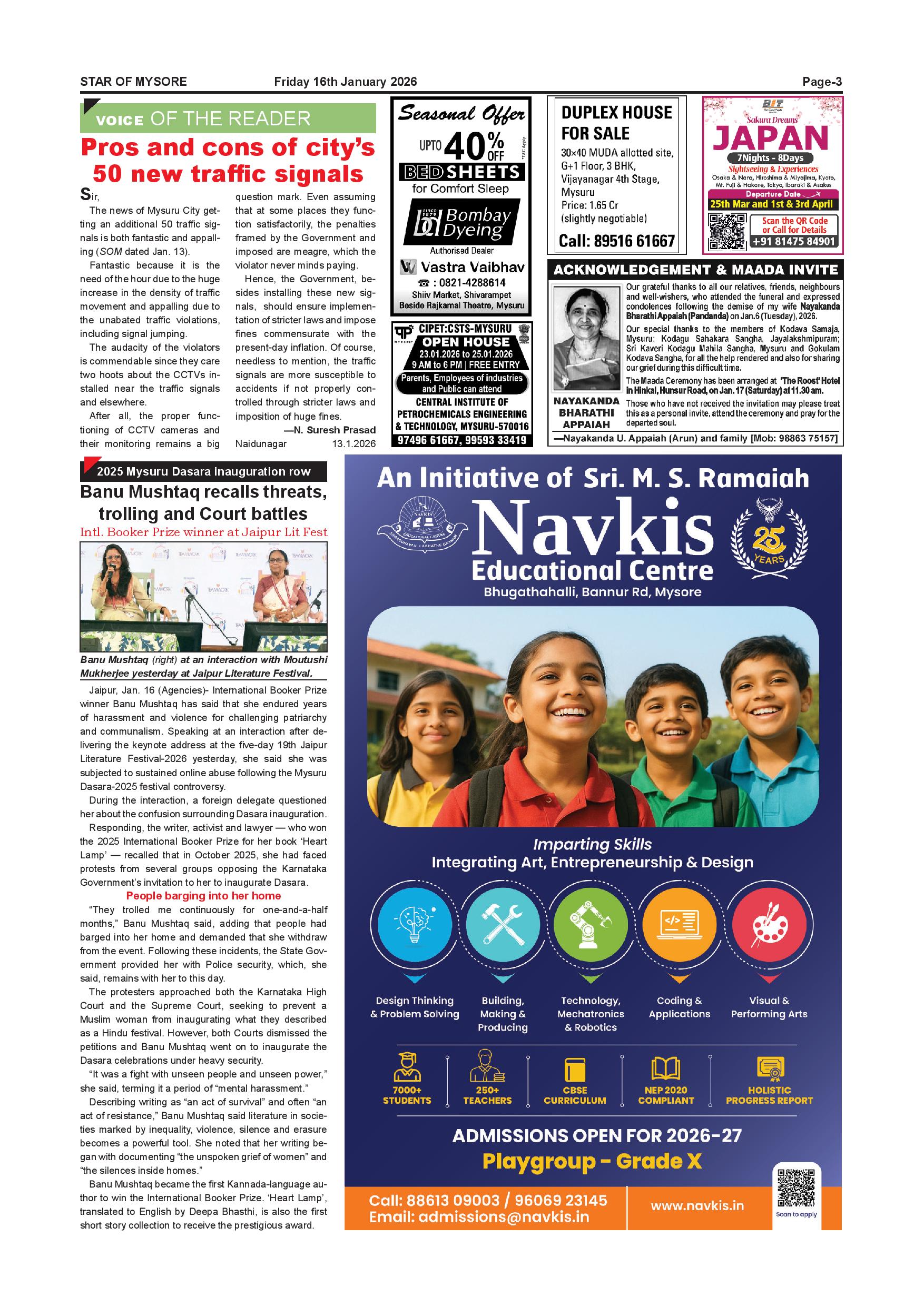 Star of Mysore Page: 3 January 16, 2026 << First << 3 >> Last >> Page 1Page 2Page 3Page 4Page 5Page 6Page 7Page 8Page 9Page 10Page 11Page 12 × Star of Mysore << First << 3 >> Last >> Page-001Page-002Page-003Page-004Page-005Page-006Page-007Page-008Page-009Page-010Page-011Page-012 Page-003