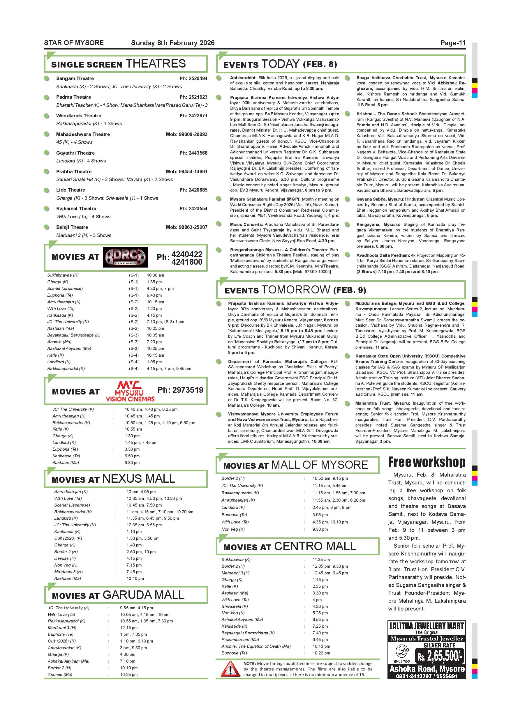 Star of Mysore Page: 11 February 08, 2026 << First << 11 >> Last >> Page 1Page 2Page 3Page 4Page 5Page 6Page 7Page 8Page 9Page 10Page 11Page 12 × Star of Mysore << First << 11 >> Last >> Feb 8-page-001Feb 8-page-002Feb 8-page-003Feb 8-page-004Feb 8-page-005Feb 8-page-006Feb 8-page-007Feb 8-page-008Feb 8-page-009Feb 8-page-010Feb 8-page-011Feb 8-page-012 Feb 8-page-011