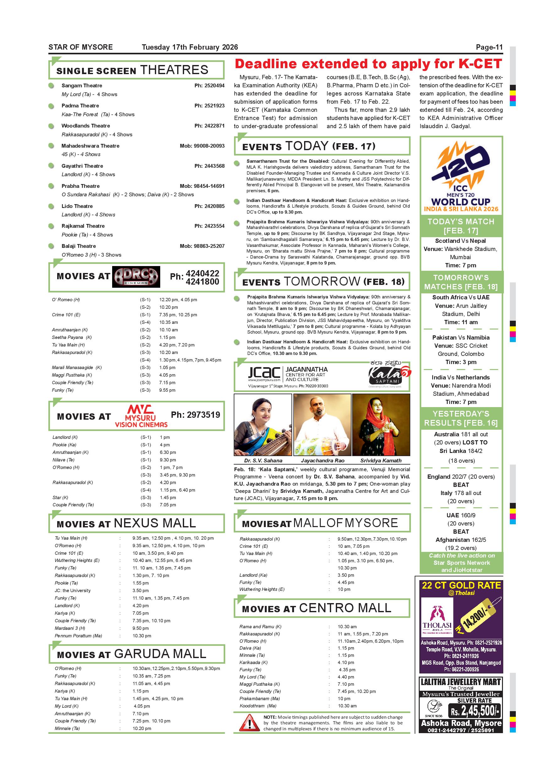 Star of Mysore Page: 10 February 17, 2026 << First << 10 >> Last >> Page 1Page 2Page 3Page 4Page 5Page 6Page 7Page 8Page 9Page 10Page 11 × Star of Mysore << First << 10 >> Last >> Feb.17-page-001Feb.17-page-002Feb.17-page-003Feb.17-page-004Feb.17-page-005Feb.17-page-006 -007Feb.17-page-008Feb.17-page-009Feb.17-page-010Feb.17-page-011Feb.17-page-012 Feb.17-page-011