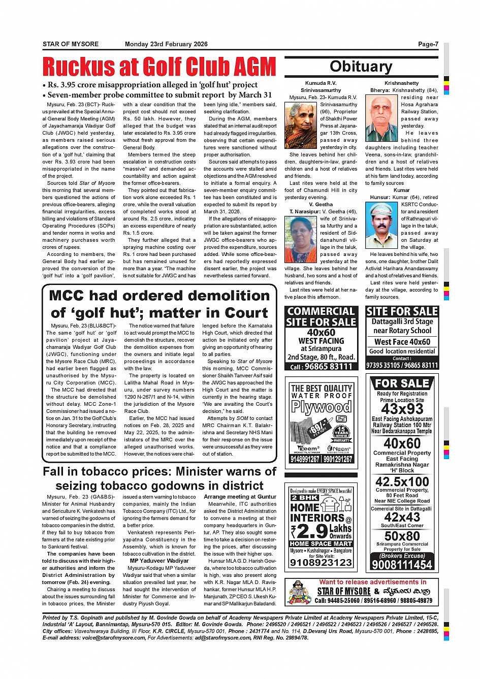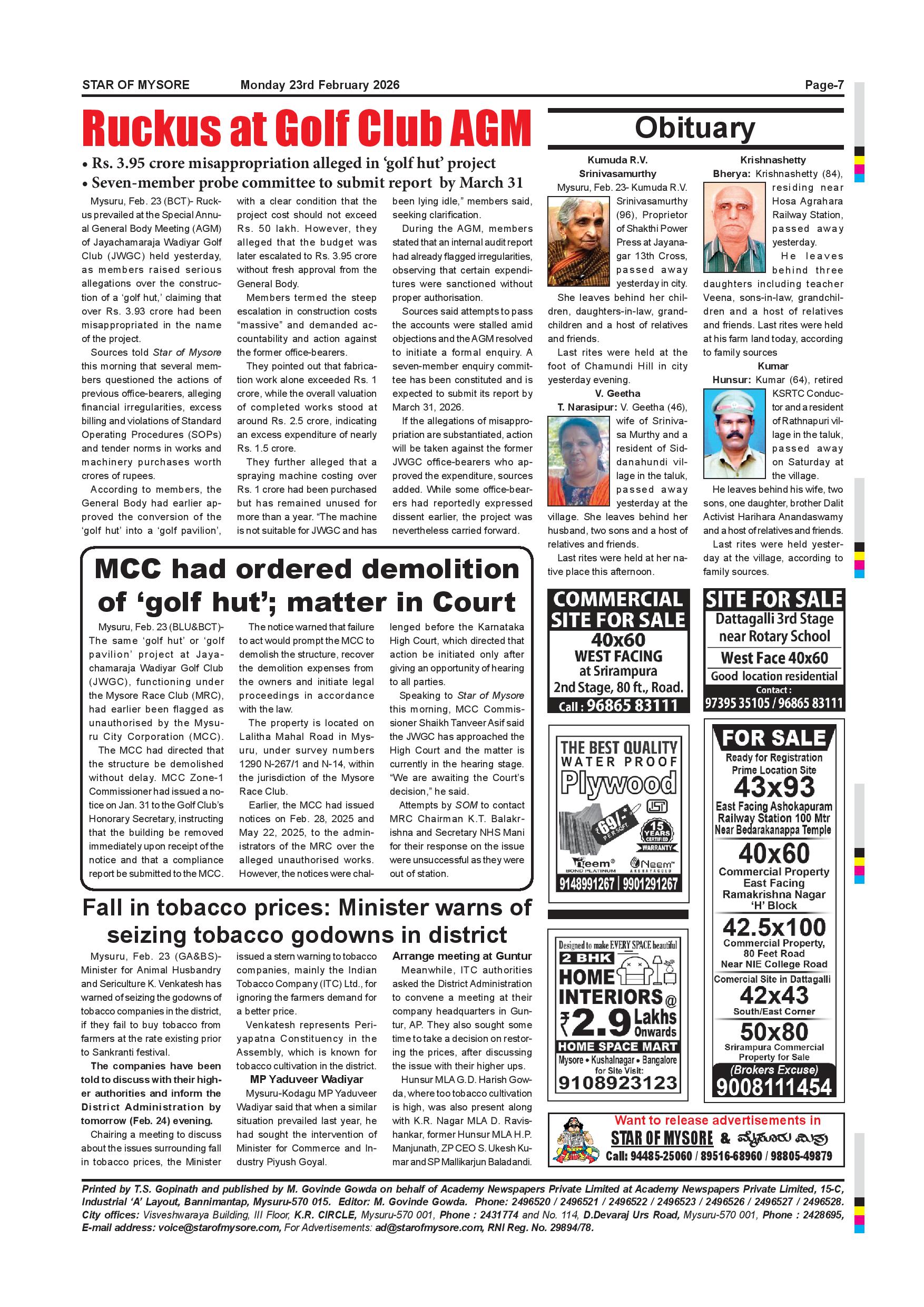 Star of Mysore Page: 7 February 23, 2026 << First << 7 >> Last >> Page 1Page 2Page 3Page 4Page 5Page 6Page 7Page 8Page 9Page 10Page 11Page 12 × Star of Mysore << First << 7 >> Last >> Feb.23-page-001Feb.23-page-002Feb.23-page-003Feb.23-page-004Feb.23-page-005Feb.23-page-006Feb.23-page-007Feb.23-page-008Feb.23-page-009Feb.23-page-010Feb.23-page-011Feb.23-page-012 Feb.23-page-007