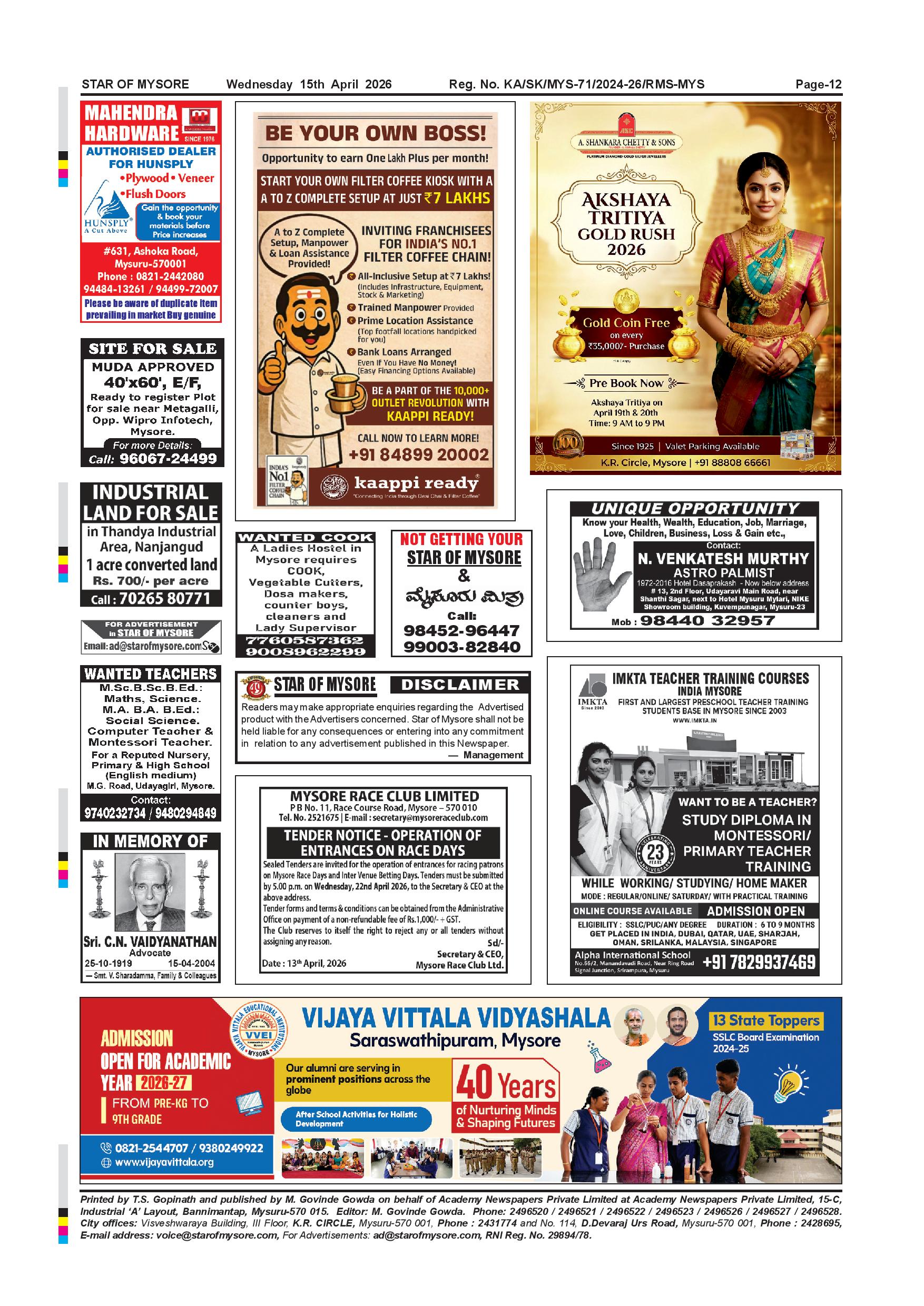 Star of Mysore Page: 12 April 15, 2026 << First << 12 >> Last >> Page 1Page 2Page 3Page 4Page 5Page 6Page 7Page 8Page 9Page 10Page 11Page 12 × Star of Mysore << First << 12 >> Last >> Page-001Page-002Page-003Page-004Page-005Page-006Page-007Page-008Page-009Page-010Page-011Page-012 Page-012