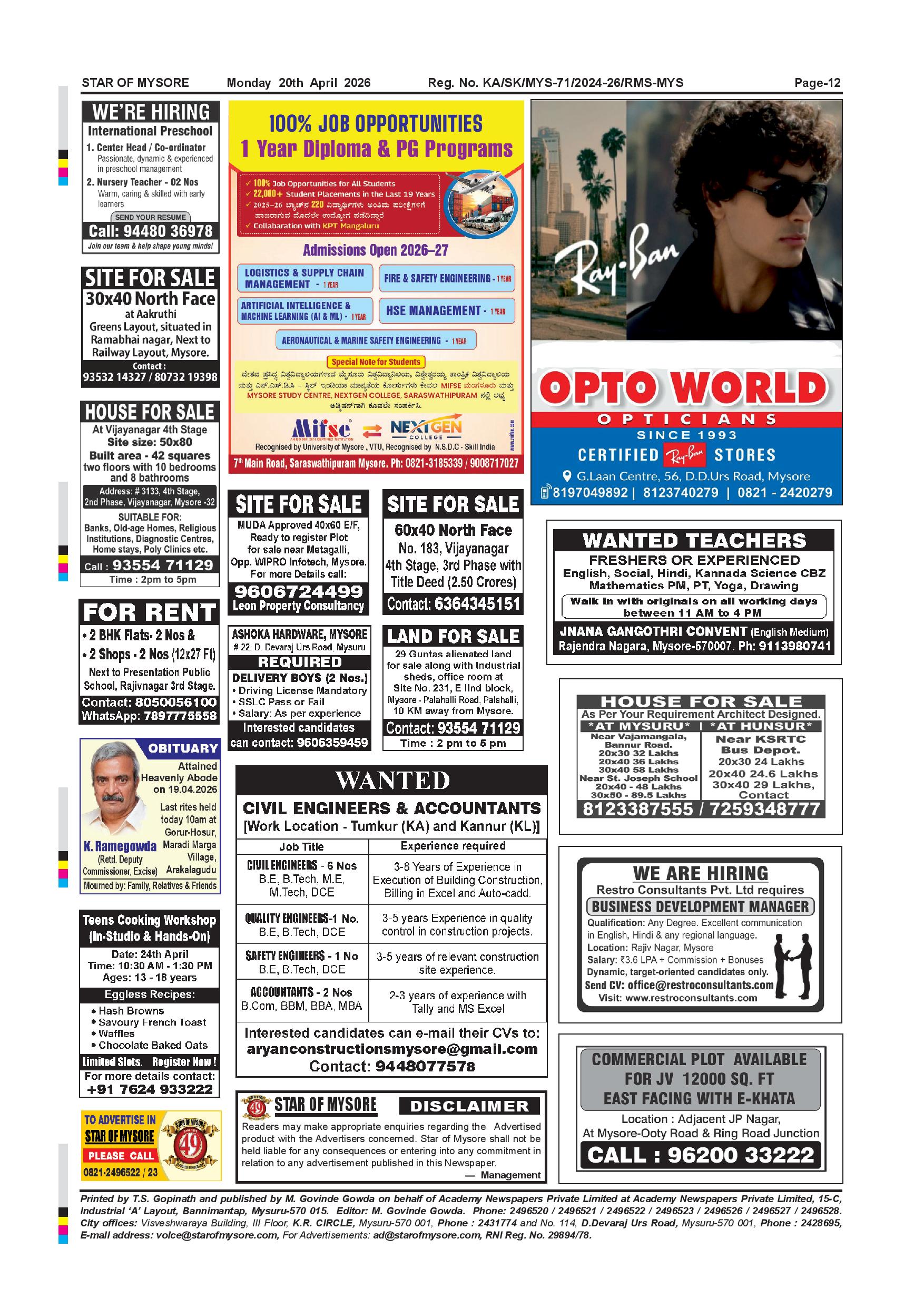 Star of Mysore Page: 12 April 20, 2026 << First << 12 >> Last >> Page 1Page 2Page 3Page 4Page 5Page 6Page 7Page 8Page 9Page 10Page 11Page 12 × Star of Mysore << First << 12 >> Last >> Page-001Page-002Page-003Page-004Page-005Page-006Page-007Page-008Page-009Page-010Page-011Page-012 Page-012