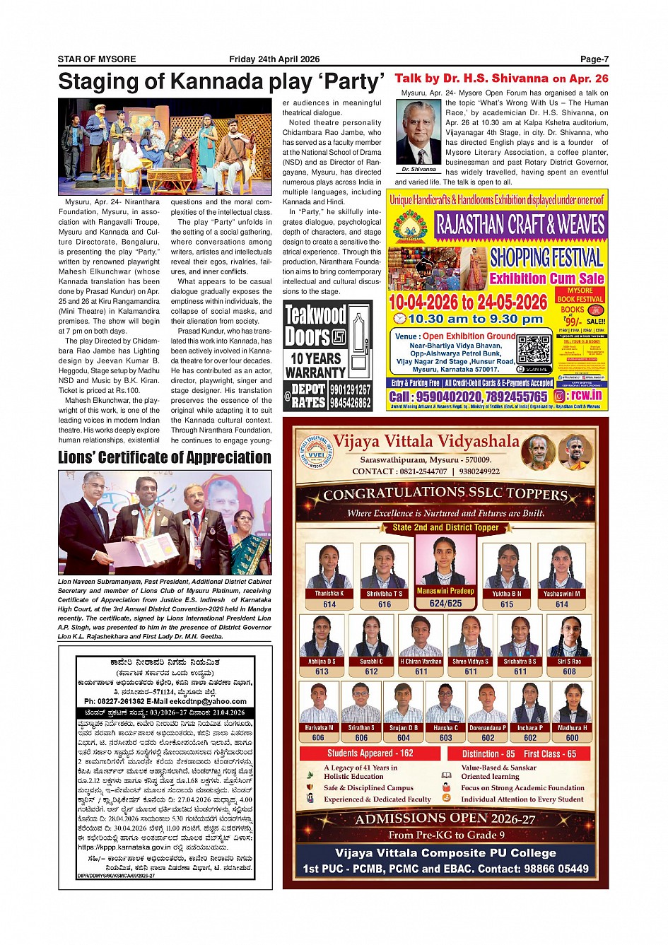 Star of Mysore Page: 7 April 24, 2026 << First << 7 >> Last >> Page 1Page 2Page 3Page 4Page 5Page 6Page 7Page 8Page 9Page 10Page 11Page 12Page 13Page 14Page 15Page 16 × Star of Mysore << First << 7 >> Last >> Page-001Page-002Page-003Page-004Page-005Page-006Page-007Page-008Page-009Page-010Page-011Page-012Page-013Page-014Page-015Page-016 Page-007